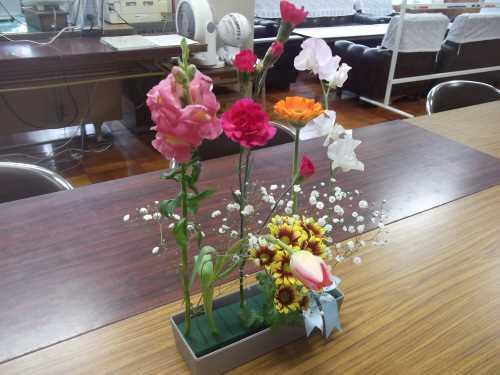 1月15日、沖縄県フロリスト協働組合のみなさんのご協力を頂いて、本校特別支援学級の児童を対象に「お花の教室」が開催されました。みんな熱心に組み合わせを考え、世界にたった一つだけの、自分の作品を生み出していました。