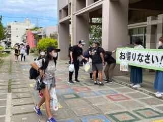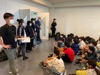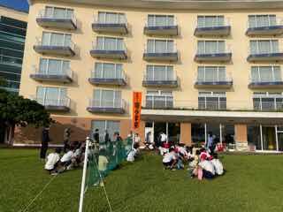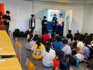 マリン体験後、マリンピアザおきなわへ到着 入館式を行いました。他の宿泊客もいるので、宿泊マナーを守り、迷惑をかけないよう心がけましょう。