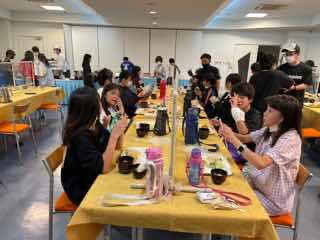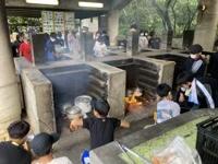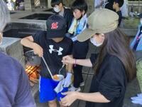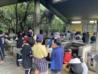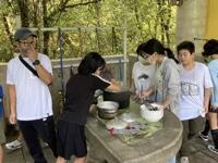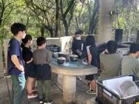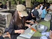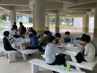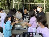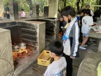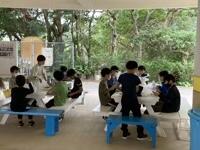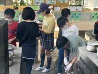 いよいよ野外炊飯がスタートしました。6つの班に分かれ、男女ともに協力しながら調理を進めています。