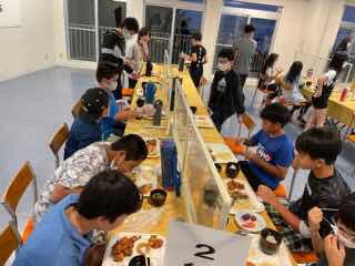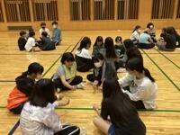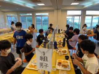 登山後はシャワーを浴び、美味しい夕ご飯をいただきました。その後に予定されていたナイトウォークラリーは残念ながら雨で中止になりましたが、体育館でレクをみんなで楽しみました。
