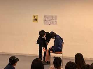 3年1組は体育でマット運動に取り組んでいて、今日はこれまでに取り組んできた技の完成度を確認していました。2組は国語「はんで意見をまとめよう」の単元で、1年生に楽しく本を読み聞かせするためにはどうしたらいいかについて考えていました。