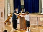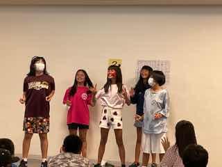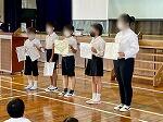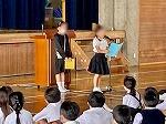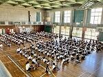 今日は明日開催される真和志北ブロックの童話・お話し大会、旗頭フェスタに参加する児童の激励会を兼ねた全校朝会が行われました。新型コロナ感染症者数が減ってきているので、今年度はじめて全児童を集めて体育館で行われました。緊張するかと思いきや、流石は学校代表に選ばれた子ども達、堂々と全員の前で話しをしたり、決意表明をしたりしていました。