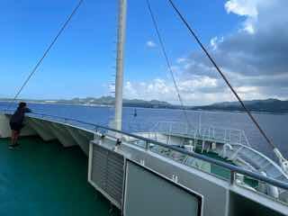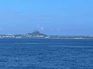 フェリーに乗り、伊江島へ 船旅も楽しいものです。伊江島タッチューが見えてきました。