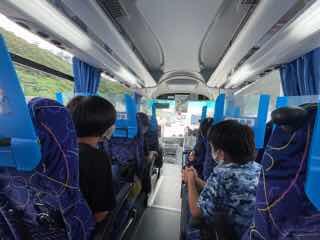 一通りの見学、体験を終えて、学校へ向けバスは行く。みんな疲れているかな?