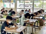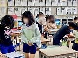 2年生は漢字テストに向けての練習に取り組んでいて、漢字スキルを使って練習に励む子、プリントで練習し先生から〇(まる)をもらいながら進める子がいました。全員満点を目指して頑張って欲しいと思います。