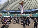 昨日は、セルラースタジアムで3年ぶりに旗頭フェスティバルが開催されました。2年生から6年生までの21名の精鋭達が曙っ子を代表して参加しました。青空の下、チンク隊の応援を受け、曙の旗が力強く上がりました。1ヶ月にわたる練習を支えてくれた先生方、当日の児童送迎、着付け、翌日の洗濯・片付けに協力してくださった保護者の皆様、ありがとうございました。