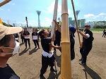 今日は、本番にあげる本旗で練習しました。