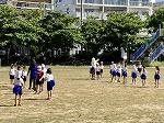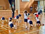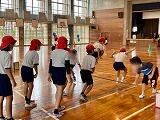 1年生は運動場に出て運動会の演技の立ち位置の確認、ダンスの練習に励んでいました。