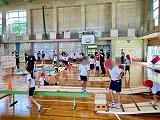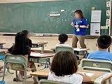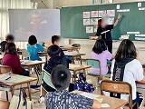 5年1組は来月末に行われる運動会に向けて、「ダイナミック琉球」のエイサー練習に励んでいました。2組は英語で「He's(She's)~ .」「He(She) can ~ .」のフレーズを使って他人を紹介し合う活動に取り組んでいました。