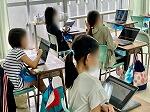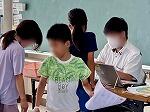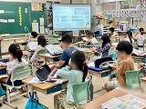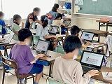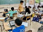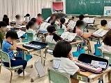 4年1組は体育でマット運動に取り組んでいて、今日は最初の授業ということで、こども達の技能の実態を確認していました。2組は社会科で那覇市にある昔から受け継がれている行事について調べ、タブレットのスライド機能を使ってまとめていました。