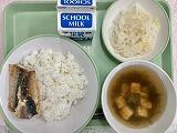 今日の給食の献立は、煮つけキャベツのしそサラダ、ごはん、牛乳でした。