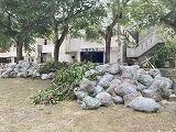 本日、ようやく前回の台風で倒れた校舎南側のゆうなの木の撤去作業が行われました。併せて、運動場東側の木の剪定も行っています。再来週の日曜日、16日に第2回のPTCA作業が予定されていますので、その際にはたくさんの保護者の協力をお願いしたいと思います。よろしくお願いいたします。