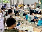 6年1組は日曜日に行われた運動会の作文を書いていました。最上級生として5年生を引っ張りエイサーを指導しただけあって、これまでの頑張りを作文に表していました。2組は理科で地層を構成しているものにはどんなものがあるのかをまとめていました。