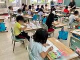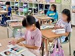 3年1組は学級活動でクラスが楽しくなる係活動を決めようということで話し合いをしていました。2組はおうちの人に運動会の招待状を描いていて、先に終わった児童は図書館で本を借りていました。