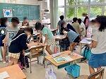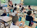 3年1組は1学期の学習面、生活面の振り返りをしていました。2組は英語で「What 〇〇 do you like ?」「I like 〇〇.」という表現を使って色や果物、教科等、友達の好きなものを尋ねる活動に取り組んでいました。