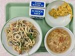 今日の給食の献立は、和風スパゲッティー、かぼちゃサラダ、トマトと玉子のスープ、牛乳でした。