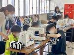 5年1組は社会科で新しい機能を取り入れた車がどのように開発されているのかについて考えていました。2組は家庭科の学習でミシンを使ってのナップザック作りに取り組んでいました。