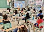 2年1組は映像を見ながら運動会のダンス練習に励んでいました。2組は漢字の学習に取り組んでいました。