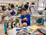5年1組は理科で月の学習をしていて、明日の天体ショー「皆既月食・天王星食」について話をしていました。2組は2週間後に迫った自然教室にむけて、急ピッチでナップザック作りに励んでいました。