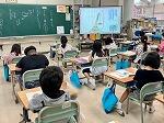 5年1組は社会科で工業製品について学習していて、今日は身の回りにある工業製品を探していました。2組は算数で図を使って考える問題に取り組んでいました。児童は自分の考えを図に表して友だちが分かるように発表していました。。
