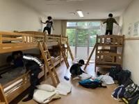 到着後は、オリエンテーションを行い、施設の使い方やシーツのたたみ方などを習いました。その後は、待ちに待った部屋への移動です。