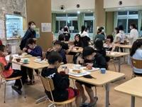 グループで協力し、予定よりも30分早くカレーが出来上がりました。5年生のチームワーク最高です。みんなで美味しいカレー、いただきます。