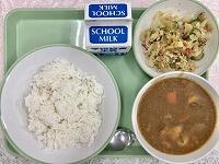 今日の給食の献立は、ポークカレー、ごはん、シークヮーサー和え、牛乳でした。