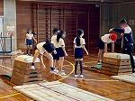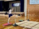 3年1組は「What"s this ?」「Hint, please.」「That's right.」等のフレーズを使い、あるものが何かを聞いたり、答えたりするゲームに取り組んでいました。2組は跳び箱に取り組んでいて、自分の技能にあった場で練習に励んでいました。
