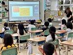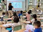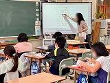 3年1組は体育「セストボール」のオリエンテーションを教室で行った後、運動場に出てシュート練習を楽しんでいました。2組は英語でものの特徴のいい方を知ろうというToday's Goalのもと、長さや形、大きさ等のいい方を学んでいました。