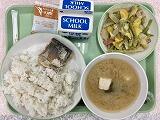 今日の給食はサバの塩焼き、きんぴらごぼう、みそ汁、ごはん、牛乳でした。