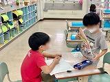 2年生も算数でした。1組はひきざんの問題に取り組んでいて、算数セットの数え棒を効果的に使いながら答えを出していました。2組はたし算とひき算の学習のまとめをドリルを使って取り組んでいました。
