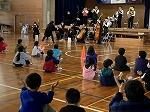 本日、本物に触れるという文化庁事業の一環でオーケストラの演奏会が5校時に低学年、6校時に高学年対象に行われました。目の前で初めて聞くオーケストラの迫力ある演奏に自然と手拍子が起こり、体が揺れ、指揮を取り出す児童がいるなど、子ども達にとって貴重な体験となる有意義な時間が過ごせたと思います。退場時には足で踏むと音が鳴る楽器の上を歩きながら笑顔で退場していました。