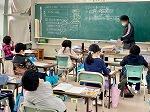 1年1組は国語「どうぶつのあかちゃん」の中で紹介されているシマウマについて、生まれたときの様子や大きくなっていく様子について読みを深めていました。2組は漢字の学習に取り組んでいて、その漢字の熟語の意味や読み方を確認しながら練習していました。