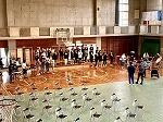 式典の校歌斉唱で演奏する6年生が今日の3校時に体育館でリハーサルを行っていました。