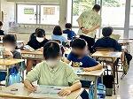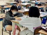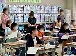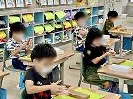 5年1組は国語で日本語の表記について分類したり特徴を調べたりしていて、同音異義語の課題に意欲的に取り組んでいました。2組は算数「速さ」の単元テストにチャレンジしていました。