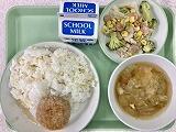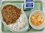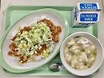 今日の給食の献立は、タコライス、ゆし豆腐、牛乳でした。