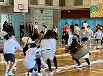 2校時には在校生より6年生のお兄ちゃん、お姉ちゃんに対してダンス等のプレゼントをする卒業を祝う会が体育館で行われました。感染症予防対策の一環で、6年生と発表学年、6年生の保護者のみ体育館に入り、その他の学年はMeet、保護者はZoomを使って参観しました。1年生から3年生までは可愛いダンスのプレゼント、6年生の中には席から飛びだし一緒になって踊り楽しんでいました。4、5年生は6年生の挑戦状を叩きつけ、勝負を挑みましたが、健闘むなしく6年生の厚い壁にはね返されてしまいました。