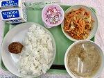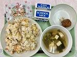 今日の給食の献立は、手作りちきあぎ、人参シリシリー、チムシンジ、わかめごはん、牛乳でした。