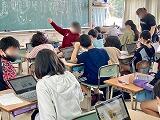 5年1組は社会科で日本ではこれまでどれくらいの自然災害が発生しているのかを調べていました。2組は理科でふりこの1往復する時間は何によって変わるのかを実験を通して検証していました。