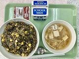 今日の給食の献立は、厚揚げの中華煮、キムチ和え、豆腐シュウマイ、麦ごはん、牛乳でした。