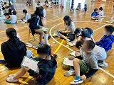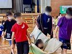 本校では今年度、体育を職員で研究し、子ども達ができる楽しさを実感できる体育、自己肯定感を高められる体育の実践を進めていきます。今日はその理論研修が体育館で行われました。実際の授業形式で行われ、場づくりの仕方やふり返りの仕方などの方法を共有しました。