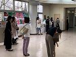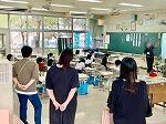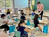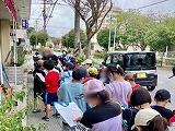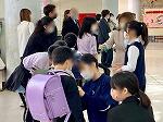 4校時終了後は児童引渡訓練が行われました。海抜3mに立地する本校は、地震津波の際には新都心のちゅらまち公園まで避難し、保護者に引き渡すことになっています。日曜授業参観同様、引渡訓練がこれまで行えてないことから、児童のみですが万一の場合に備えて兄弟同士で集まるなどの集合隊形の確認を行いました。