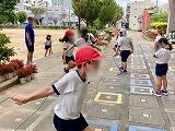 今年度は体を動かすことが好きな児童を育てるために、体育専科教諭が中心となって、体育館や運動場に子ども達が体を動かしたくなるしかけが至る所に設置しました。今日は1年生がそれを使って楽しんでいました。