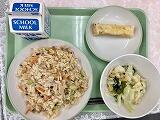 今日の給食の献立は、春巻き、バンサンスー、高菜チャーハン、牛乳でした。