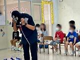 今日は1・2年生対象に聴力検査が図工室で行われました。耳を澄ませて、ヘッドフォンから聞こえる音に反応して手を上げ下げしていました。
