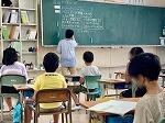 5年1組は「2.8×0.75」「0.18×0.24」の計算問題の練習を通して、最後に0がついたときの処理の仕方、0をつけ足すときの方法について学んでいました。2組は国語の説明文には尾括型、双括型、頭括型があり、教科書の「見立てる」という教材がどの型にあてはまるのかを確認していました。