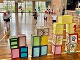 2年1組は図工「材料からひらめき」の単元で、様々な形や色をした材料を重ねたり並べたりしながら想像力を働かせて作品を作っていました。2組は跳び箱に取り組んでいて、授業途中のキラリタイムで上手に跳び箱を跳んでいるお友達の動きを確認していました。