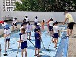 5、6校時に4年生によるプール清掃が行われました。働き者の4年生、大小プールの藻の清掃を終わらせるだけでも大変な作業でしたが、それに加え、小プールをキレイに磨きあげていました。4年生!お疲れ様!