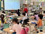 3年1組は算数でふえた数を求める時に図を使って考えることのよさについて学んでいました。2組は英語で「How are you ?」「I'm 〇〇.」の表現を使って、ジェスチャーをつけながら気分を伝える活動をしていました。