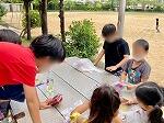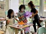 2年生は図工「光のプレゼント」に取り組んでいて、プラスチックでできた透明の容器等にペンで彩色し、それを陽の光にかざしてカラフルな影を映して楽しんでいました。